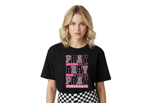 Pray On It Black Checkered Graphic Tshirt