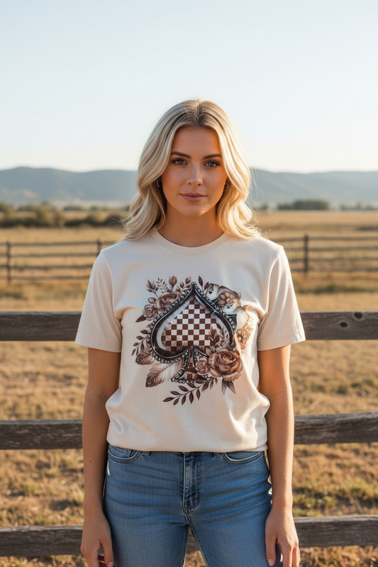 Checkered Brown Spade Roses Graphic Tshirt