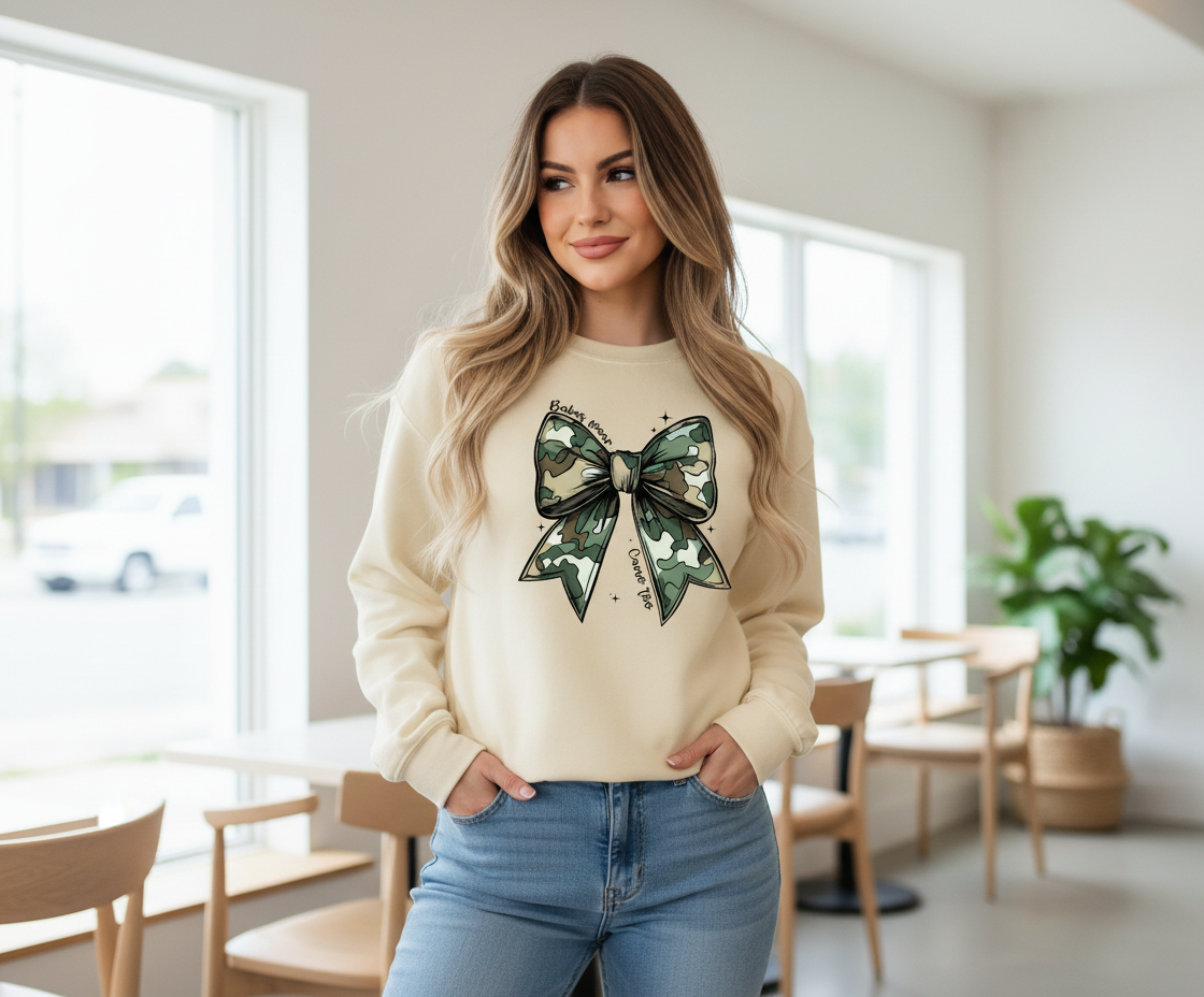 Babes Wear Camo Too Bow Graphic Sweatshirt