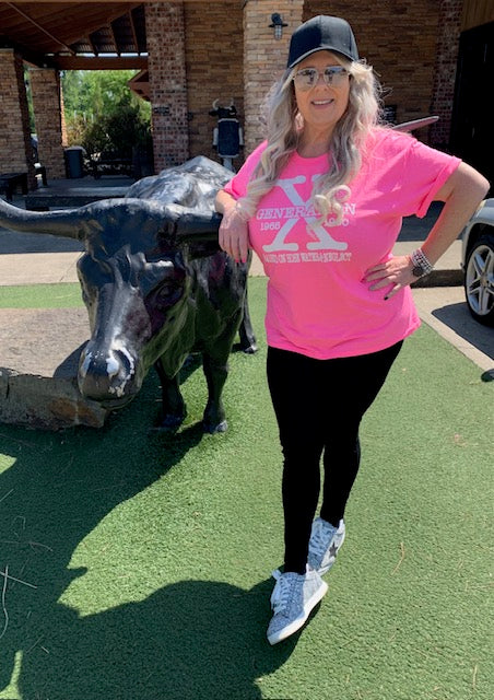 Get ready to rock the Gen-X look with this neon pink graphic tee! Representing the generation of rebellious youth from 1965 to 1980, this tee is perfect for those who were raised on hose water and neglect. Embrace your quirky side in style!