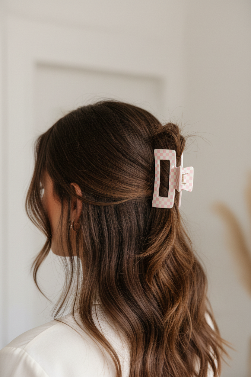 Secure and style your tresses with ease using our Pink Checkered Hair Claw Clips! Made with quality materials, these 3-inch clips keep your hair in place all day while adding a touch of vibrant pink to your look. Perfect for any occasion, give your hair the attention it deserves with these stylish claw clips.