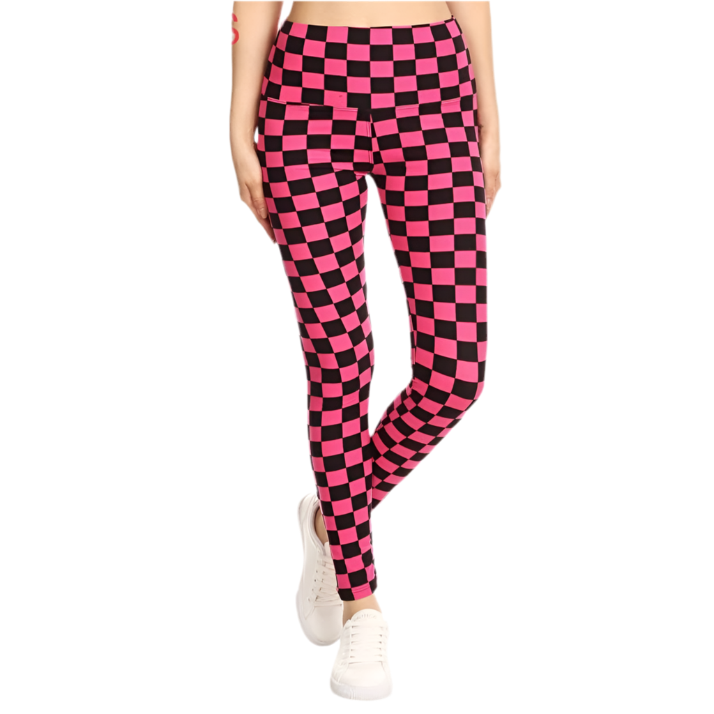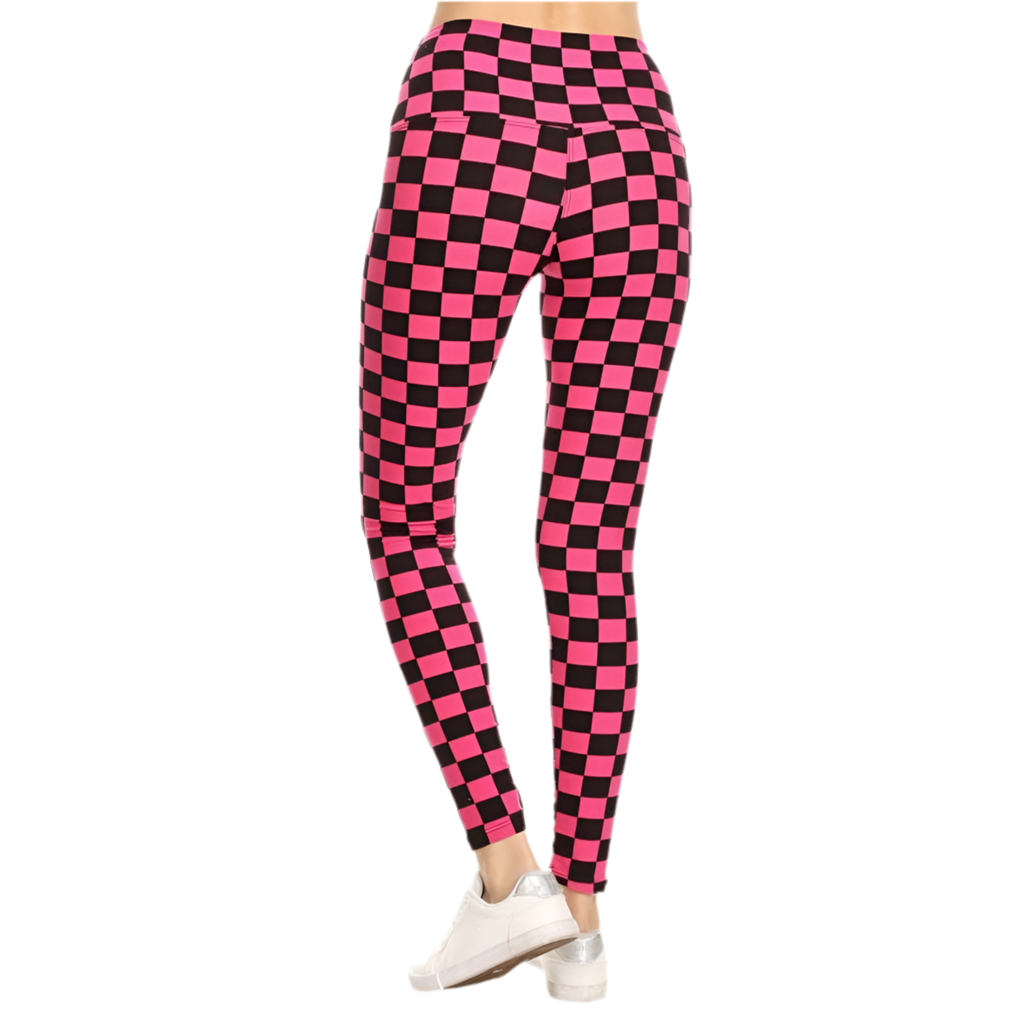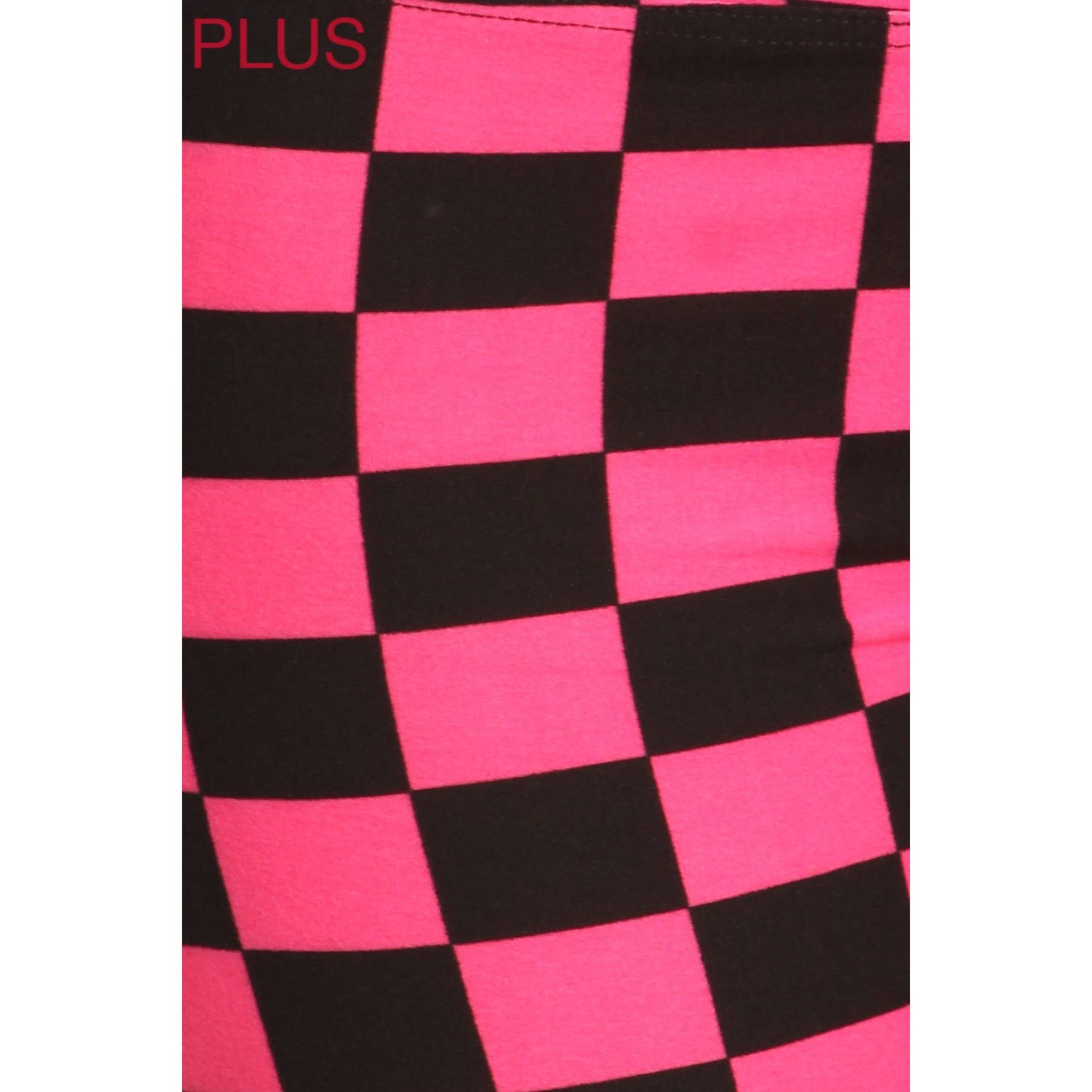Plus Size Pink and black checkered leggings. 5" Yoga Style Waistband Buttery Soft Print Leggings 92% Polyester 8% Spandex Plus One Size (Fits Sizes 12-22)