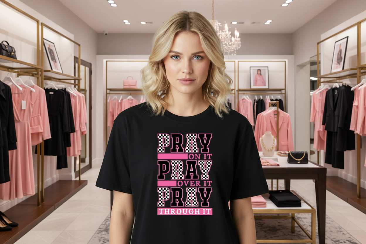 🏁Elevate your wardrobe with the Pray On It Black Checkered Graphic DTF (Direct to Film) T-shirt!