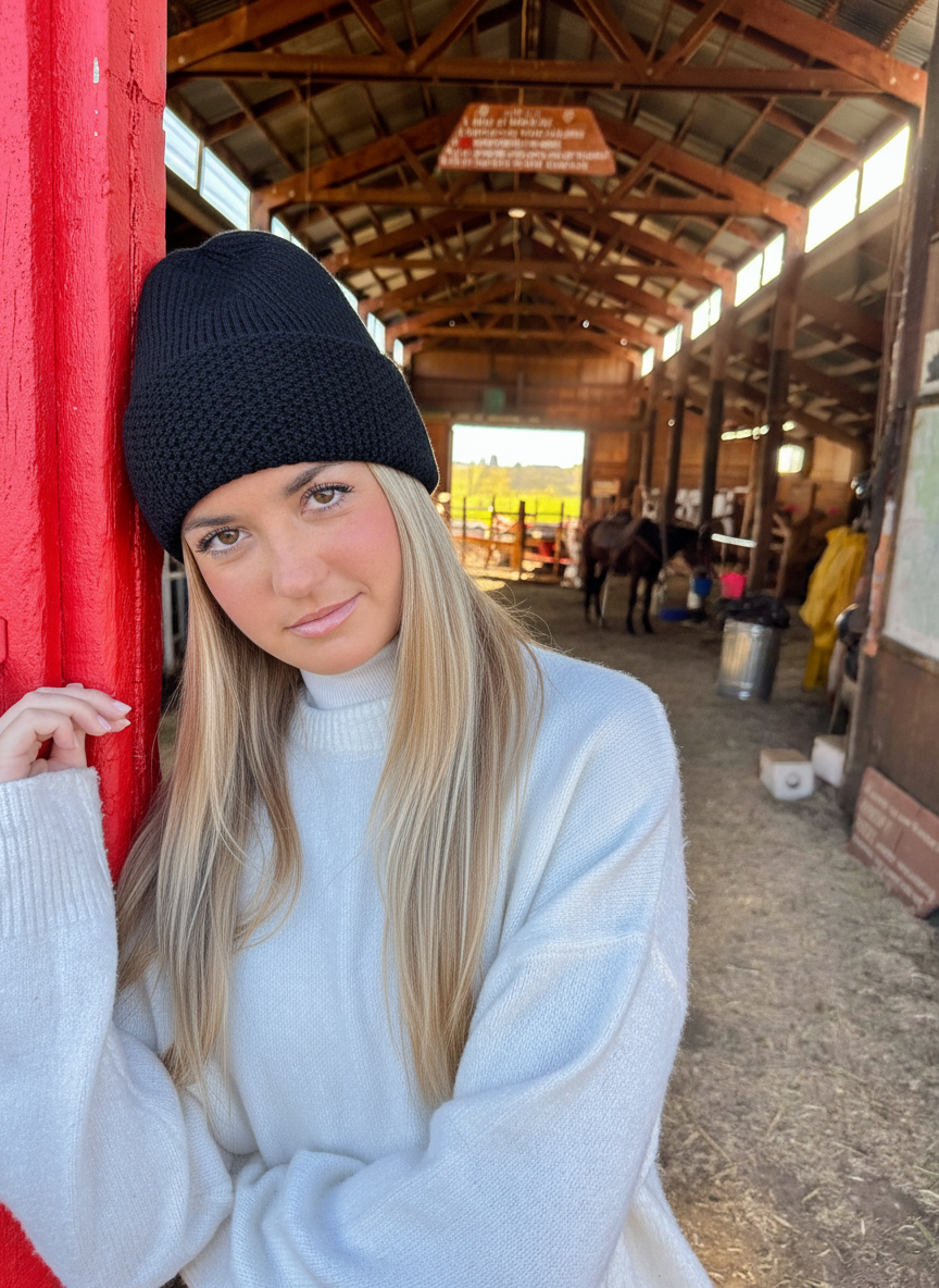 A soft ribbed beanie with a rhinestone encrusted cuff! Your new rhinestone beanie will be so cute on you! Spot clean only. Lay flat or hang to dry.