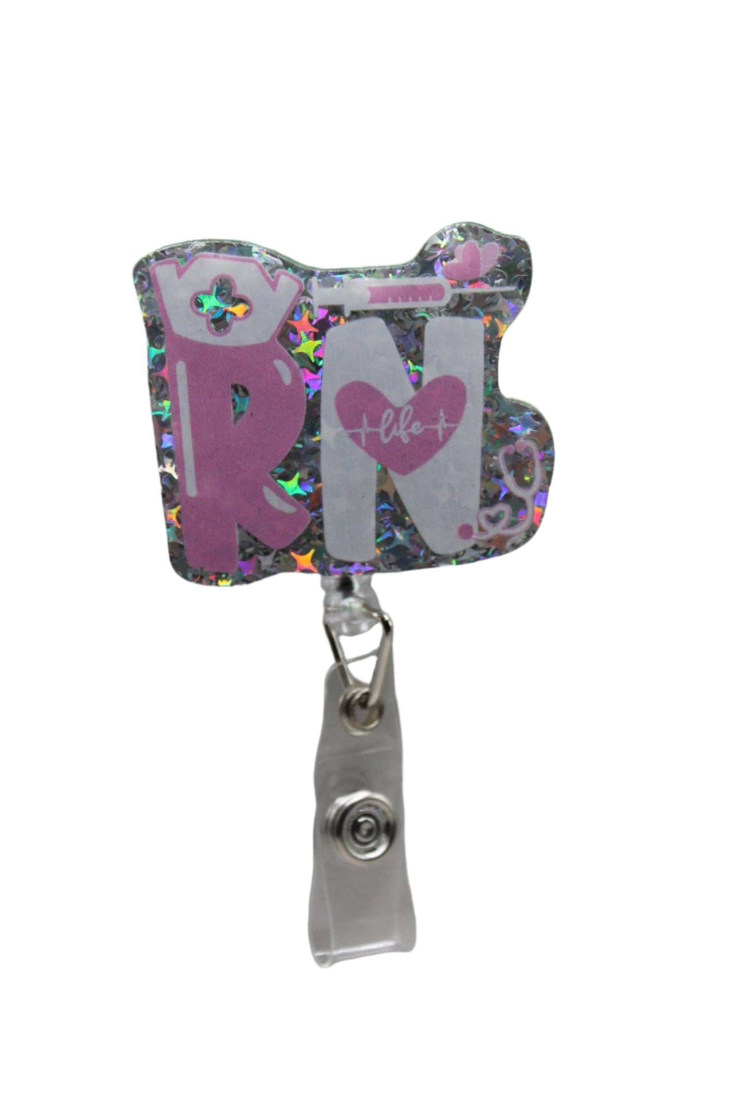 RN Silver Confetti Badge/ID Holder with Alligator Clip