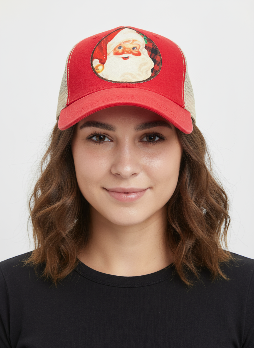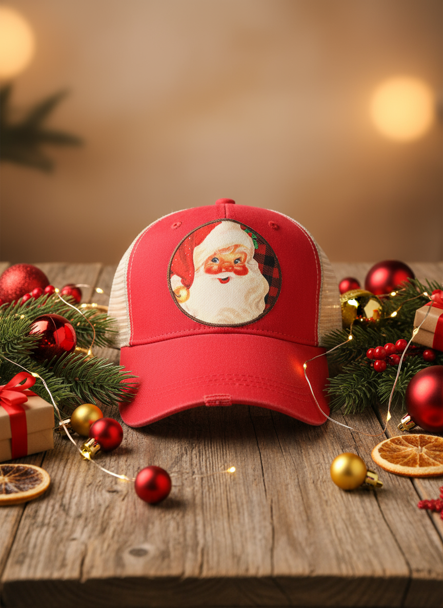 Embrace the holiday spirit with our Vintage Santa Buffalo Plaid Trucker Hat! Featuring a classic buffalo plaid design and a vintage Santa graphic, this hat is perfect for adding a festive touch to any outfit. The adjustable Velcro ensures a comfortable fit, making it a must-have for any holiday event. **Non Returnable Seasonal Item**