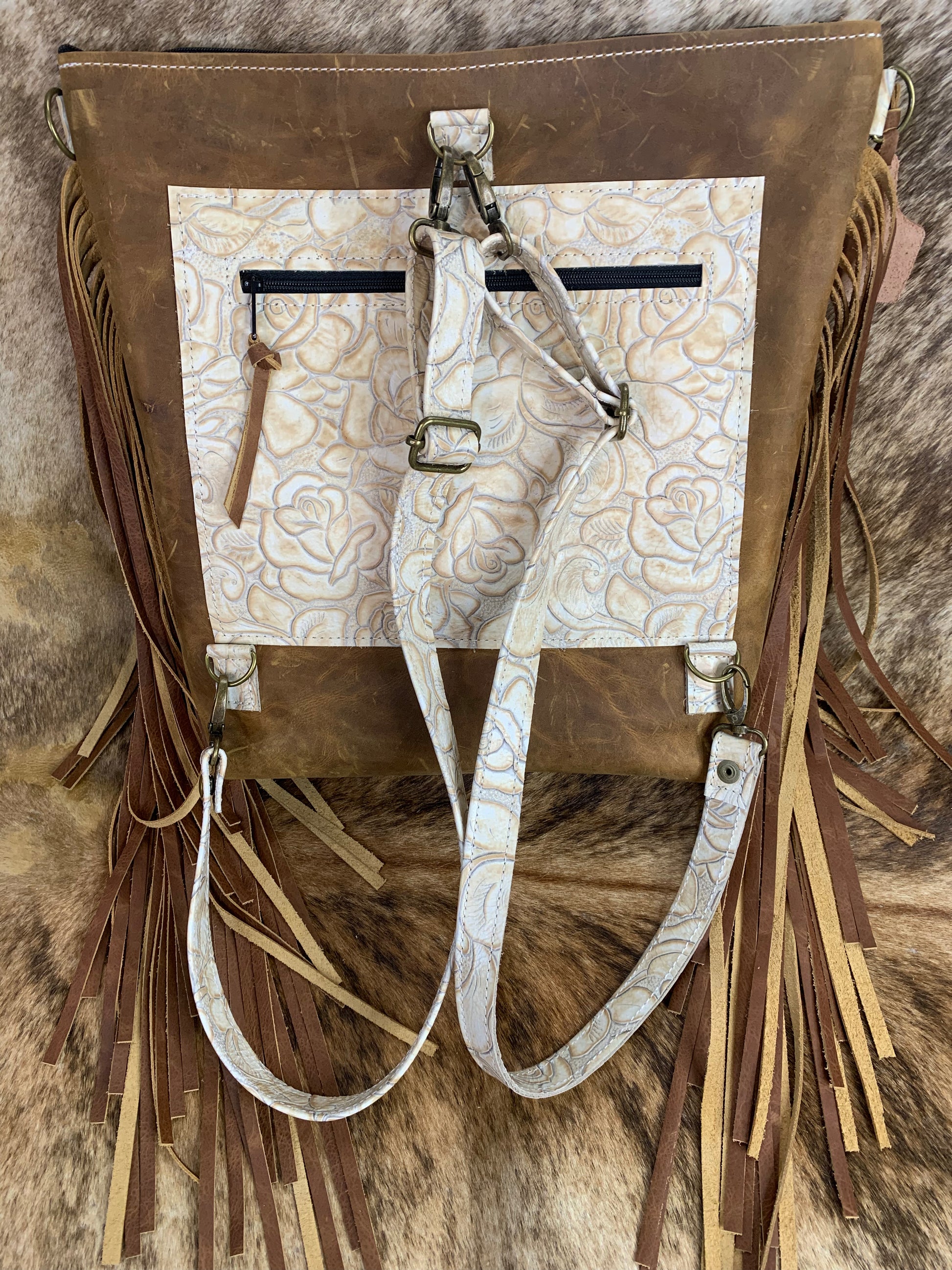 Experience the perfect blend of style and functionality with our Tbar cowhide and leather embossed backpack/shoulder bag. Crafted with high-quality materials, this versatile bag can easily convert from a backpack to a shoulder bag, giving you the flexibility to choose your preferred carrying style. With its unique design and sturdy construction, it's the perfect accessory for any adventure!