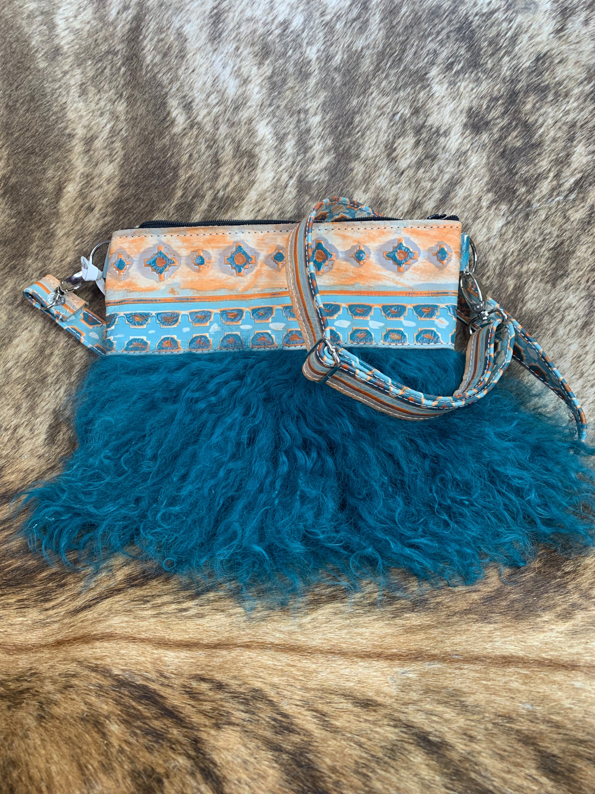 Experience luxury and versatility with our Tbar Tibetan Crossbody. Made from exquisite Tibetan lamb and embossed leather, this 10x8 crossbody comes with an adjustable strap for the perfect fit. Elevate your style and stay organized with this must-have accessory!